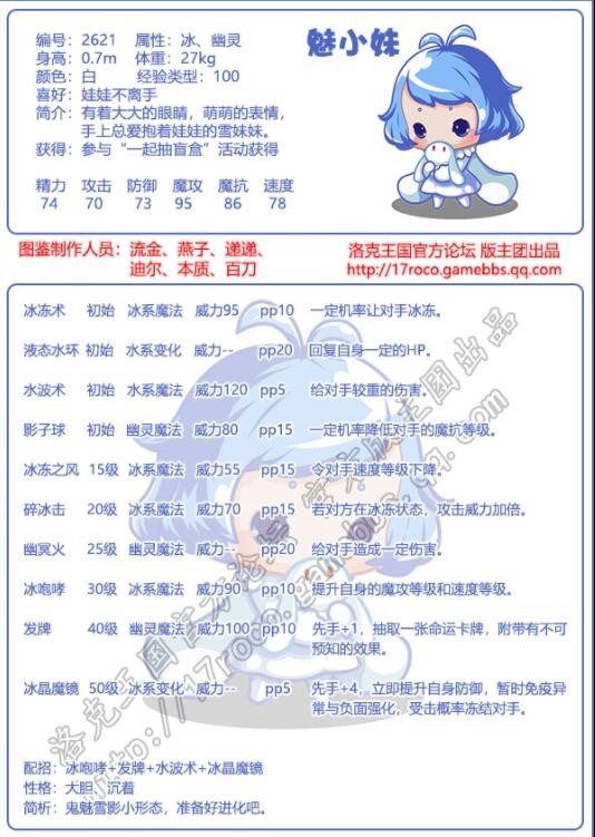 3、魅小妹简析:鬼魅雪影小形态,准备好进化吧。