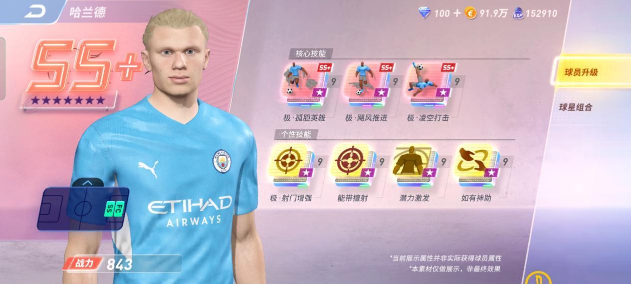 飓风推进则赋予了哈兰德在防守反击中,冲击对方后防线的能力,在哈兰德顶在锋线前沿时,可以尝试使用长传冲吊或高速身后球来撕扯对方后防线。